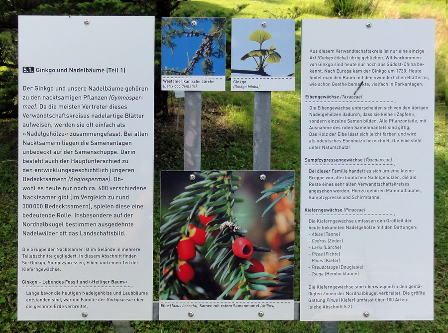 Der Neue Apothekergarten Ulm liegt in der Nähe der Gewächshäuser und wurde 2001 als Gemeinschaftsprojekt zwischen der Universität Ulm und der Firma ratiopharm angelegt. Auf seinen terrassenförmigen, zum Lehrer Tal hin abfallenden Beeten wachsen rund 200 Heilpflanzen, die nach 30 medizinischen Anwendungsgebieten und 5 weiteren Themen zur Pflanzenheilkunde angeordnet sind. Hier haben wir auch einen weiteren Ginkgobaum gefunden. . |