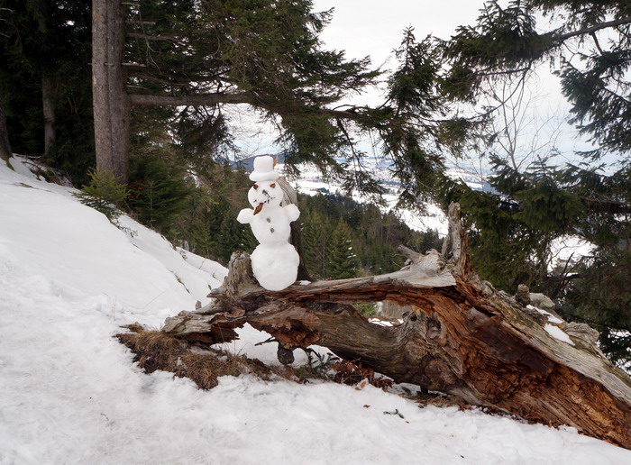 Auf einer kleinen Winterwanderung auf der Landmark haben wir auf einem morschen Baum, diesen kleinen Schneemann endeckt.