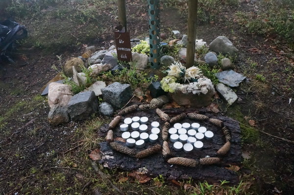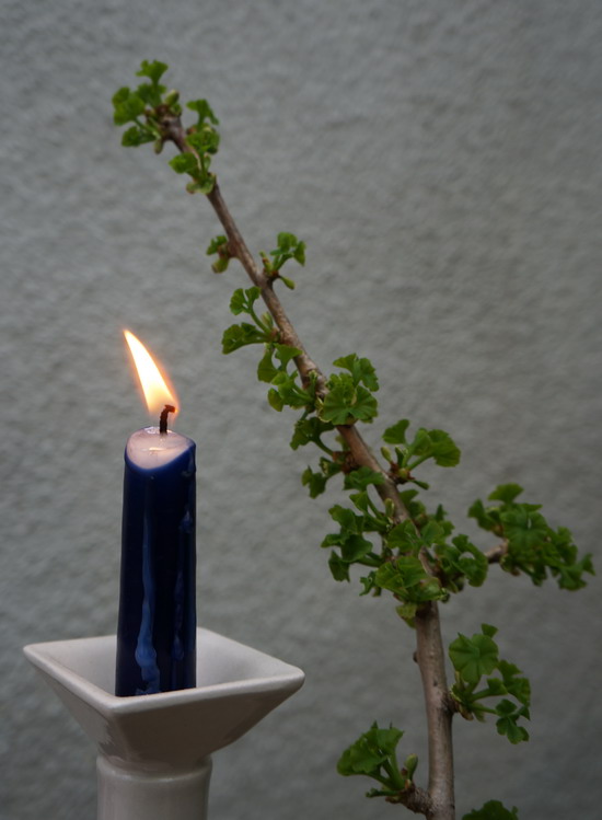 Vor Samuels Ginkgo auf der Landmark wollten wir 29 Kerzen anzünden - das Wetter wollte uns nicht lassen!